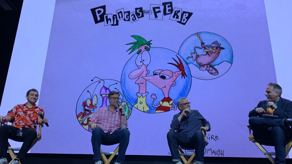 Those lucky guests who attended Day 1 of the 2019 D23 Expo and visited the Disney+ booth saw Dan Povenmire and Jeff “Swampy” Marsh, — the creators of one of the most beloved Disney animated shows Phineas and Ferb — reunited with the star of the show (no not Perry) Phineas Flynn himself Vincent Martella. This panel was very casual, with Variety's TV Editor Mike Schneider spending a few minutes talking the history of this amazing show from how the concept came about when Dan and Swampy were working together at The Simpsons all the way up to how the follow-up Disney series, Milo Murphy’s Law started to crossover with the original show and bringing everything full circle. The panel had some great trivia at the end, which included the cast doing the voices of their respective characters.