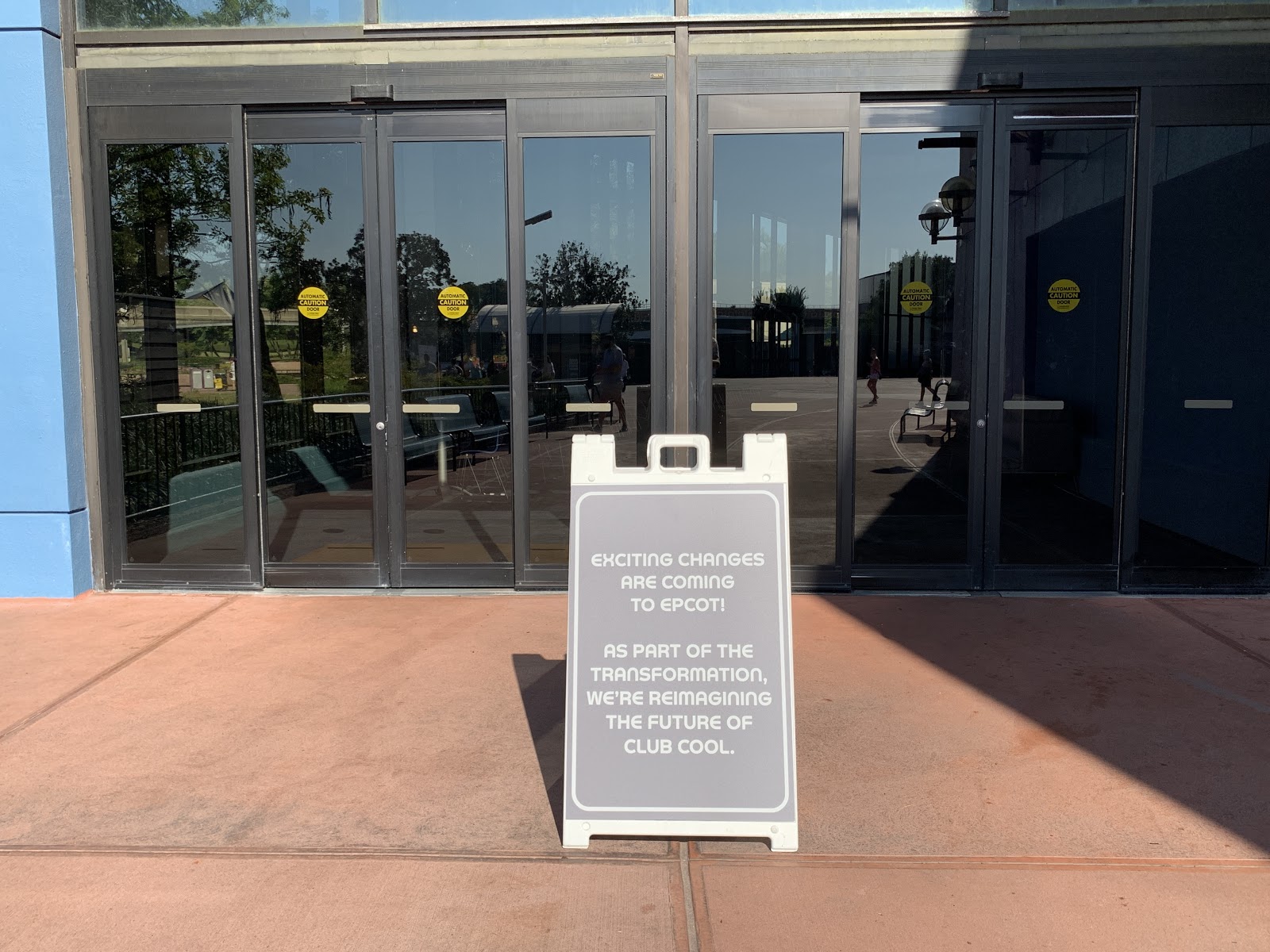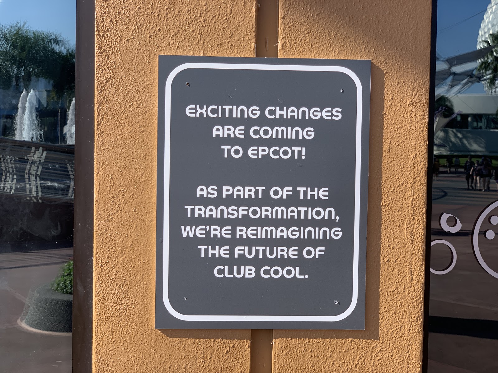 When we returned to Epcot today, walls had been put up blocking access to the former Fountain View Cafe, and Coca Cola Club Cool.
