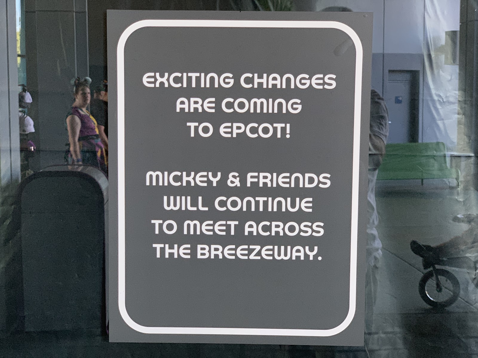 Yesterday officially ended an era at Epcot as several locations closed in preparation for the major Epcot changes coming over the next few years. This morning, the changes have already begun. We already showed you the new Epcot Character Spot that opened today. Other changes have begun as well.