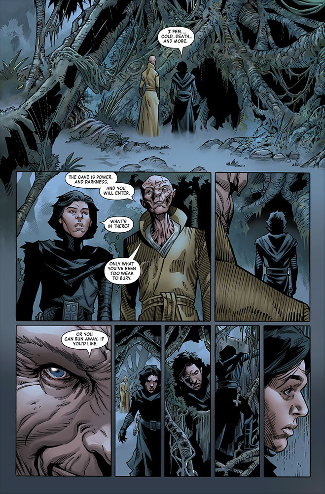 Part of the larger Age of Resistance anthology series (which itself is a subcategory of the year-long Age of Star Wars maxi-series), Marvel’s Star Wars: Age of Resistance - Supreme Leader Snoke takes place prior to the events of The Force Awakens, but after Kylo Ren AKA Ben Solo had turned to the Dark Side of the Force, abandoned his former Jedi Master Luke Skywalker, and fell under the tutelage of Snoke himself. The comic details two trials from Ren’s training at Snoke’s hands, including being Force-dangled over a pit of spiky rocks in the Rarlech System and-- SPOILER ALERT-- a visit to Yoda’s exile home on the planet Dagobah.