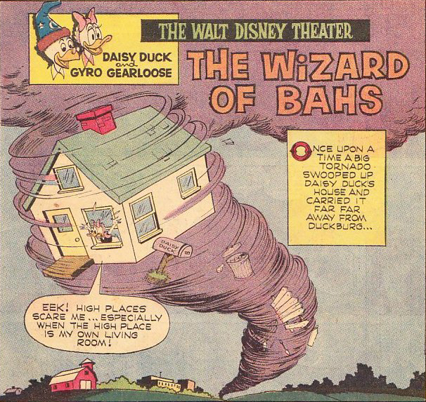 Not one to give up on a good idea, Walt Disney revisited Oz in 1954 when he acquired the rights to the eleven available Oz books, excluding The Wonderful Wizard of Oz. The first tangible evidence of Disney owning the rights came in the form of a short lived attraction inside of a gift shop on Main Street U.S.A. at Disneyland. “The Wizard of Bras” was a mechanical man who played a pre-recorded spiel about the history of feminie garments inside the Hollywood-Maxwelle Intimate Apparel shop for ladies only. The original location is significant for having a porch with rocking chairs for men to wait while their lady friends shopped. The store closed in January 1956 and the wizard went with it, just six months after the park opened, but the porch with rocking chairs is still there. Even stranger, a comic called “The Wizard of Bahs” was produced in 1966 starring Daisy Duck as Dorothy with Snow White characters in the cast such as the Dwarfs as Munchkins and the hag as the Wicked Witch of the West. The world of Oz was also the basis for some blue sky Disneyland attractions that never got built during this same period.