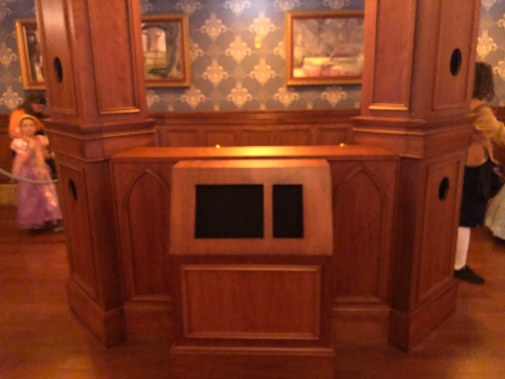 - The former open room with Cinderella and Elena now has columns awaiting the camera installation and what looks very much like a Disney PhotoPass kiosk in-between seen in the other automated locations.