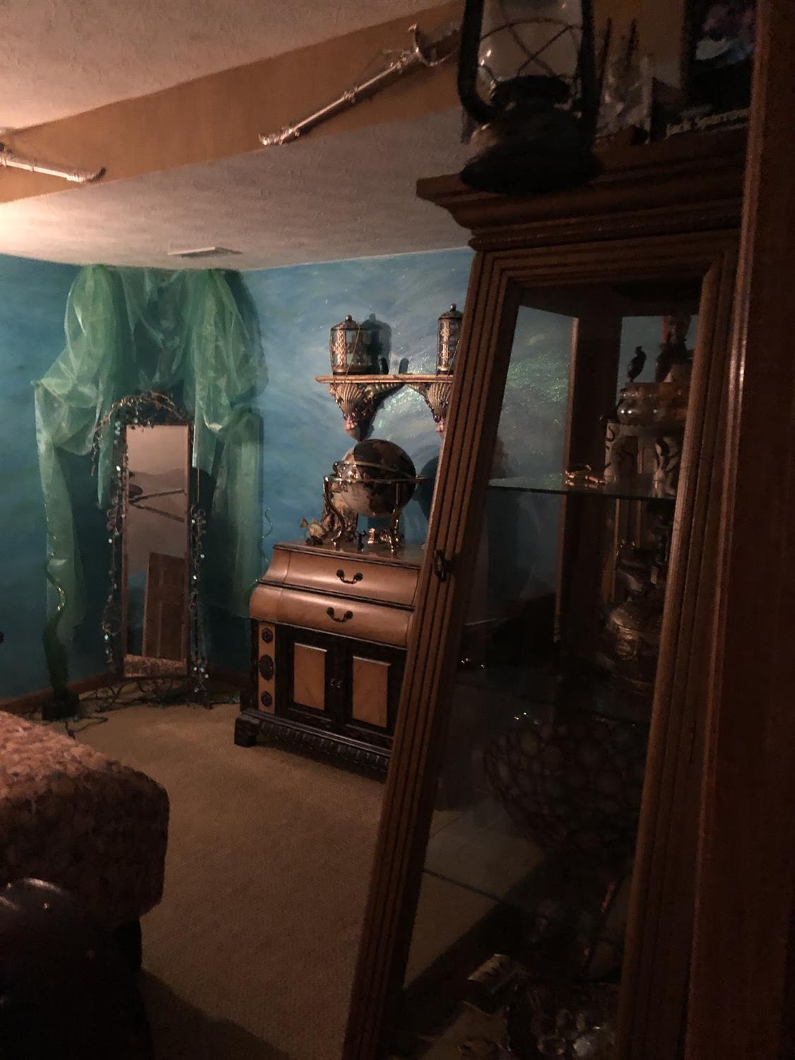 The unthinkable happened in January of all months. We had a lovely warm-up to the 50s and 60s, which turned all the snow into rain. A lot of rain. Two days straight of rain. The six inches of snow that had been on the ground also melted all at once and my poor sump pump couldn’t handle the massive amount of water. My beautifully finished basement took 6 inches of water and I lost almost everything. I was at Disney at the time enjoying a nice warm break after the craziness of the holidays. I came home to a wet, damp, musty basement with my blue ocean like Berber carpet already gone. I stood in what was left of my Little Mermaid room and wondered how was I going to completely redo it all. But I did have a blank canvas. I took the insurance money and put a wonderful blue ocean like Florida Tile through the entire basement. Learned that lesson! But it was significantly more expensive than carpet. Between that and having to replace all the lower wallboard and my wood stained baseboard, I didn’t have much of the insurance money left to try and buy furniture.