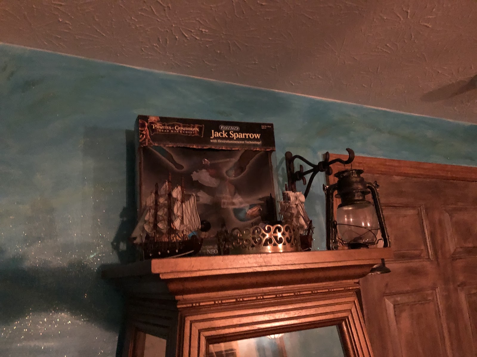 Another friend left an empty pineapple rum bottle, and another gave me a talking Jack Sparrow doll that OF COURSE I’ve left in the box.