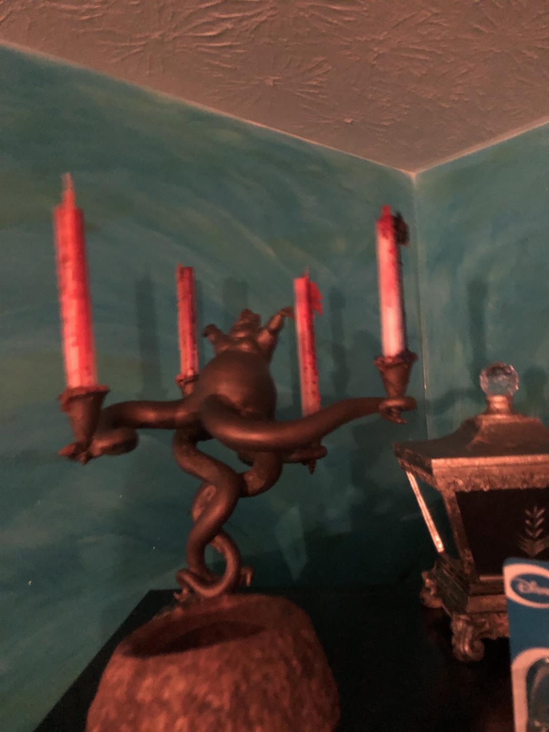 I got out all my brass Ariel and Ursula pieces and put them in the room. I was so happy to see them all displayed instead of stuck in a curio cabinet or still in the original box.