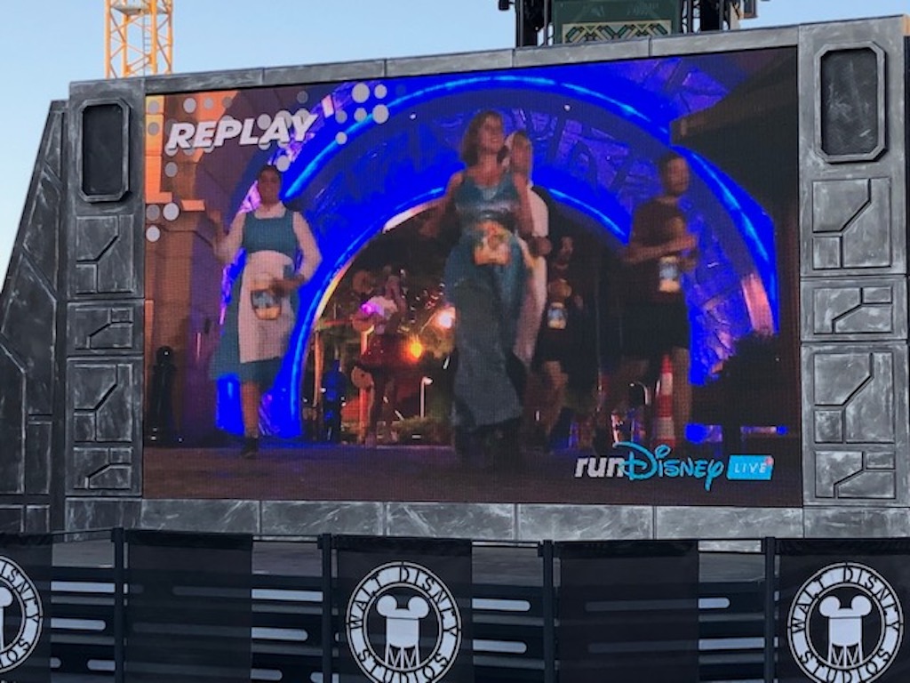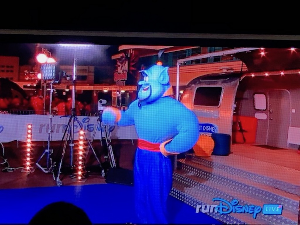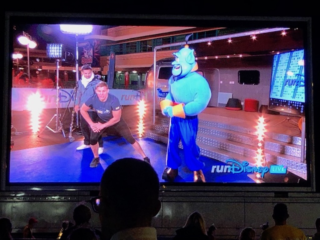 The Genie surprised the runDisney commentators stationed at the finish line and help us runners start our day with warm up exercises. As we waited to hit the course, runDisney showed us trailers for some upcoming films you might have heard of: Maleficent: Mistress of Evil and Frozen II . And then we watched the Disney+ trailer that always gives me chills! Is it November 12 yet?