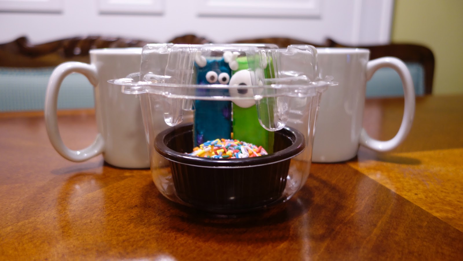 As for those sticks, the food dyed hues and candy eye/eyes helped them resemble our favorite monsters while the frosted tops helped give them a satisfying snap. The flavor on each was nice and, although they were unmistakably sugar cookies, I didn’t find them to be super sweet. In fact, I have to say I was pleasantly surprised that this dessert wasn’t as sickenly sweet as it could have been.