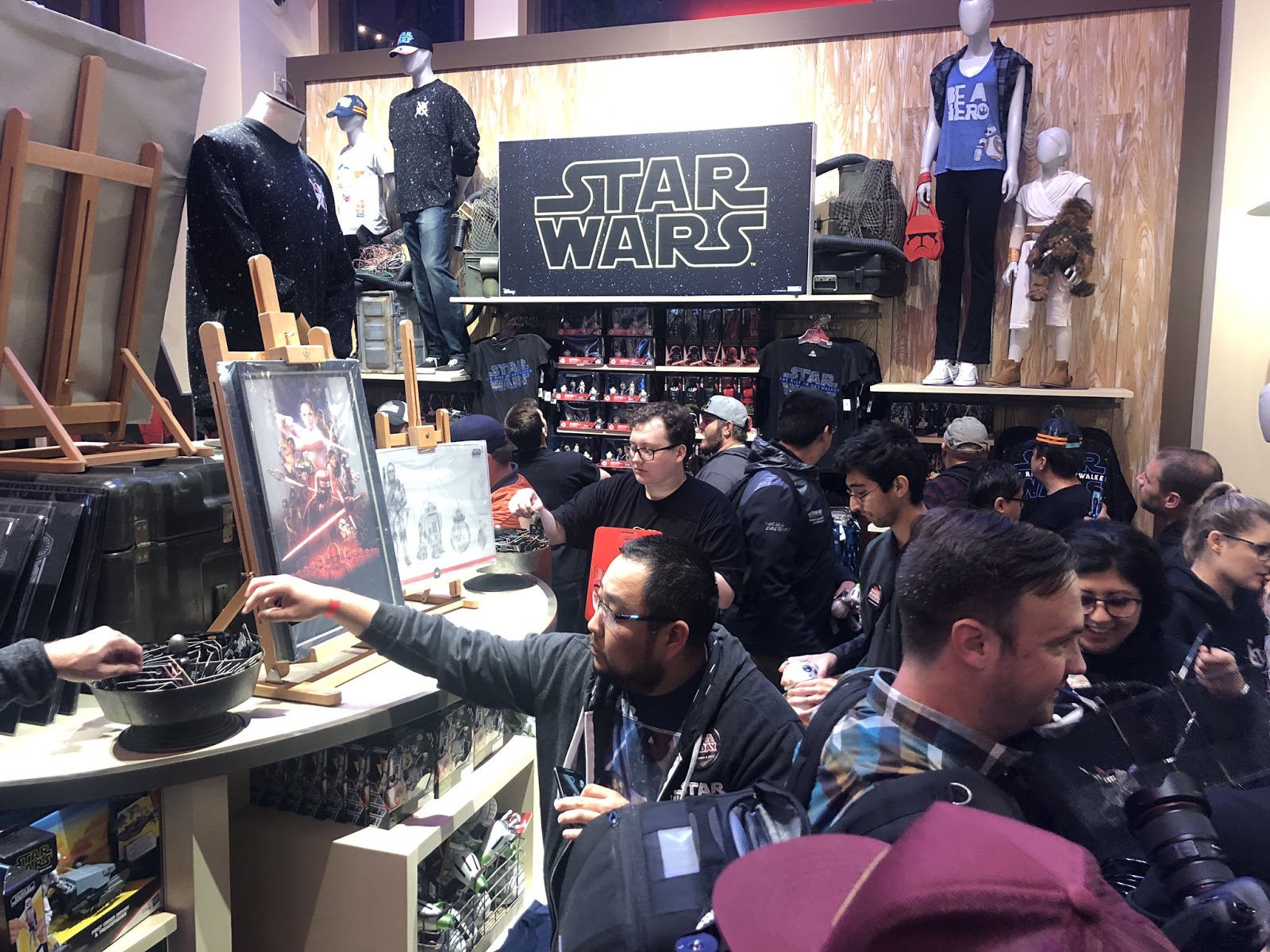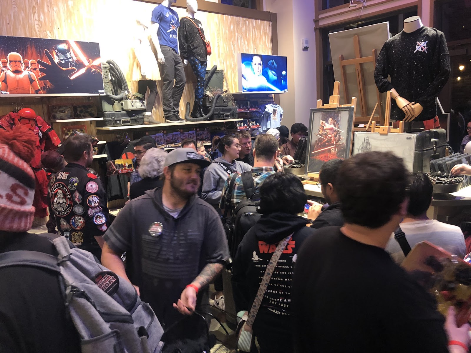 There were t-shirts, mugs, hats, LEGO sets, static figurines, ships, and other various merch on the shelves, but no action figures. Cast Members asked about the lack of toys gave a variety of responses: one clerk informed me they hadn’t received the full shipment of Triple Force Friday releases, another shopper was told they didn’t have time to put everything out. Either way, there were a lot of unhappy campers in Downtown Disney District after midnight-- all of whom (myself included) were left crossing their fingers they will be able to track down these collectibles elsewhere.