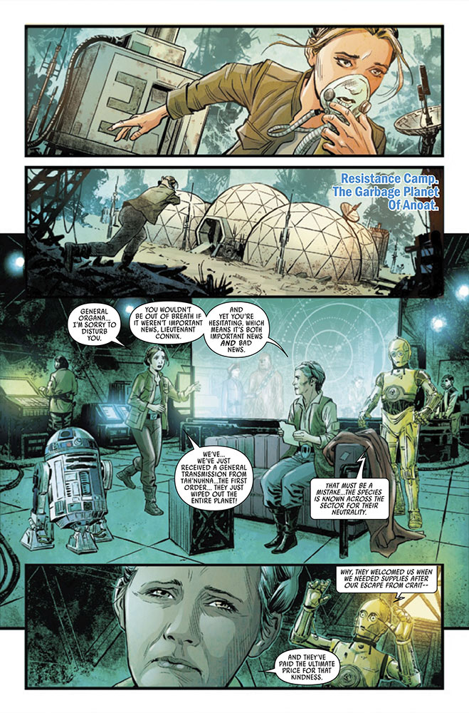 Star Wars: Allegiance picks up not long after the events of The Last Jedi, with General Leia Organa and what remains of her Resistance forces hiding out on the garbage planet of Anoat (first mentioned in The Empire Strikes Back). After Leia learns of a devastating First Order attack on a historically neutral world that helped resupply the Resistance after it fled Crait, she determines it is time to become proactive in rebuilding the fleet and taking up the fight once again.