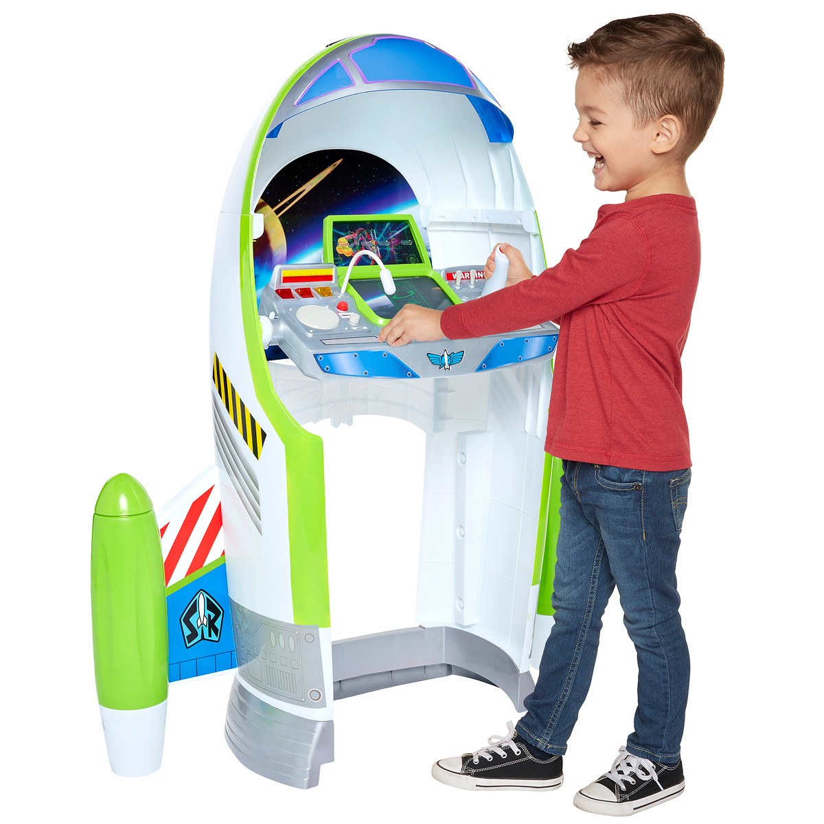 Buzz Lightyear Star Command Center is ideal for active kids and has two different modes: Launch mode (upright) and Flight mode (horizontal). Take your space missions to the next level and bravely go where no space ranger has gone before! Defend the galaxy and blast and zap space monsters, interstellar invaders and the evil Emperor Zurg! Console panel converts into a desk for study time.