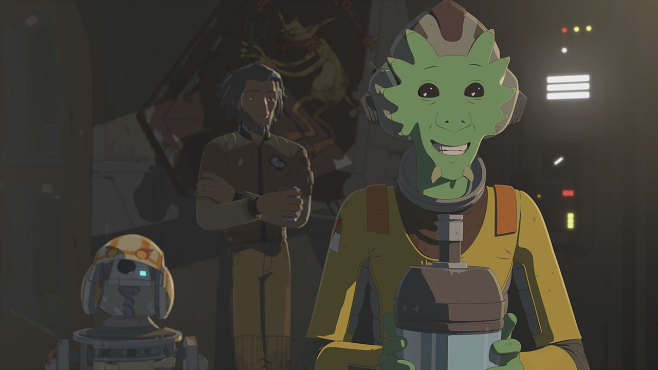 He’s enlisted former Rebel Alliance pilot Jarek Yeager (Scott Lawrence) to act as their new squadron leader and train the Aces for future combat. Surprisingly, he also wants to bring aboard the unlikely new member Kazuda Xiono (Christopher Sean) as the latest addition to the team. Hype Fazon (Donald Faison) is not happy about either of these decisions and “doesn’t remember signing up for the Resistance.” It doesn’t help that he’s also not Kaz’s biggest fan, and has branded the newcomer with the admittedly appropriate nickname “Kaz-tastrophe.”