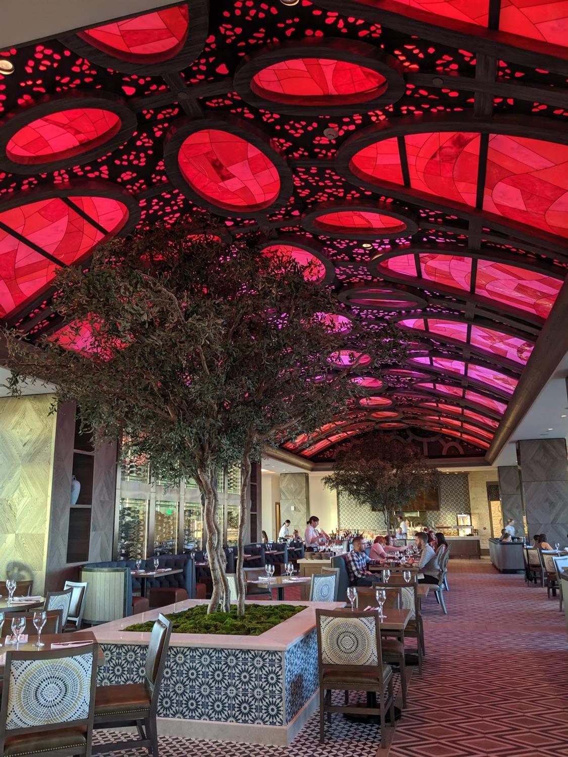 Despite all the press the Gran Destino Tower received upon opening, I knew next to nothing about it. Nor had I heard of its restaurant, Toledo. But a couple of people in our extended party really wanted to eat there, so we were happy to make it a big family outing. When we went to the elevator (and the Gran Destino Tower has a very cool elevator where you select your floor from the outside) and chose floor 16, I was so excited. I did not know this was a restaurant with a view. We stepped out of the elevator and immediately went onto the humongous balcony to a view unlike any I’ve seen at Walt Disney World. You can literally walk around and see the entire property from a relatively central location. I preferred it to the top-of-the-Contemporary view. Once inside the restaurant, I really liked the roomy layout. Some Disney restaurants can be quite cramped, but not this one. The service was mostly decent, but they did fall down by never bringing my son his dessert - we did finally got it to-go. And the food was really, really good (with the exception of the aforementioned dessert - maybe that’s why they didn’t want to bring it to us). And as a vegetarian for over 30 years who never really liked seafood anyway, I loved being able to order their Plant-Based Seafood dish featuring crab-cakes, calamari and scallops. Such a unique experience for this vegetarian. I can’t wait to try it again. What an experience!