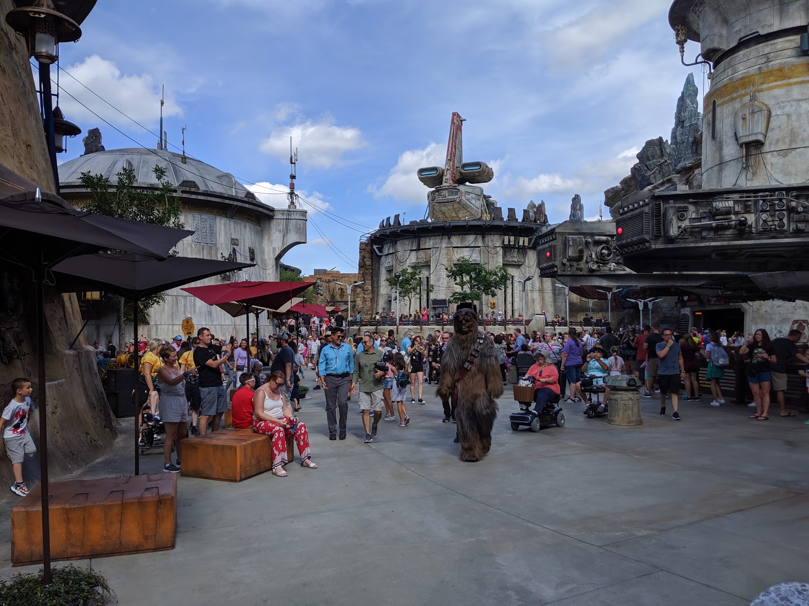 On my last trip to Disneyland, we only had a very short time in Star Wars Galaxy’s Edge. It was at night and most of our time was spent in Oga’s Cantina. So I feel like this was my first real visit to Galaxy’s Edge. I loved it! I like Star Wars, but I’m definitely not a fanboy. But I love being in an immersive environment. I think Disney really got this right. It’s huge, it’s multi-leveled, it has multiple paths - all things I love. The details are as great as advertised. And my favorite part is how it feels like a real location. Rather than meet and greets and shows, there are just characters going about their lives. I saw Chewbacca and Stormtroopers roaming around numerous times. Rey, Vi Moradi and others going about their business of inspecting and fixing their ships or looking for the Resistance. It just feels like we’re on Batuu among the locals. I completely love it. We also had lunch at Docking Bay 7 where I had some incredible Plant-Based meatballs. (Note: I did not forget about Smuggler’s Run. More on that in my next article).