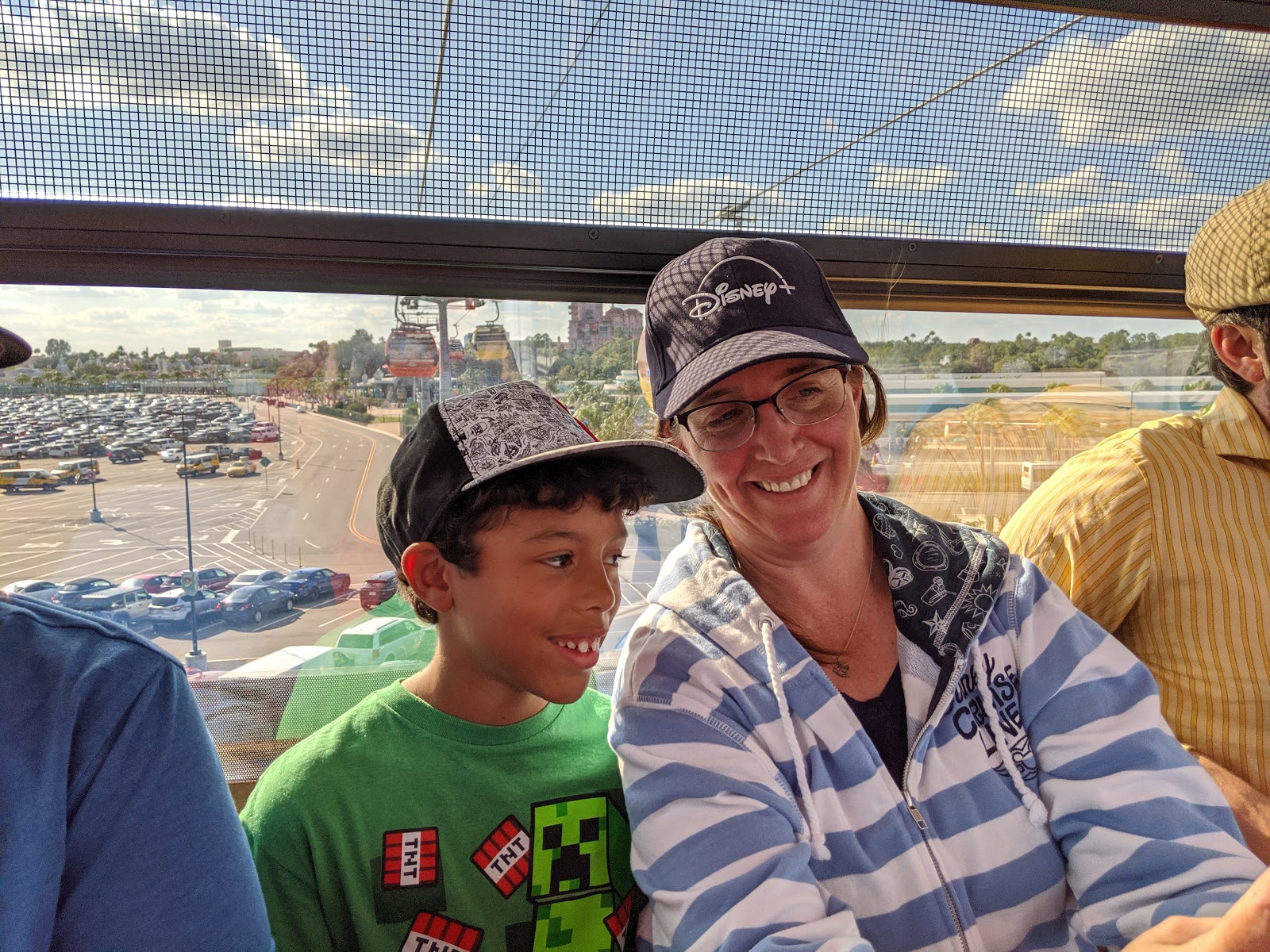 - It’s so peaceful. You know how when you leave a park on a bus, and you either end up standing or sitting while looking at someone’s torso. Everyone is exhausted and slightly irritated at the cattle-feel of the process? Plus the hum of people talking about their day, complaining about the heat or just yelling at their kids? You get none of that on the Skyliner. Once you board, you’re sitting, you’re comfortable (yes, even without air conditioning) and it’s quiet. In fact, it’s hard to describe the sense of peace you get on the Skyliner. It’s just so quiet and peaceful up there as you gently glide and sway through the sky. I’m getting wistful just writing about it. I want to go back!