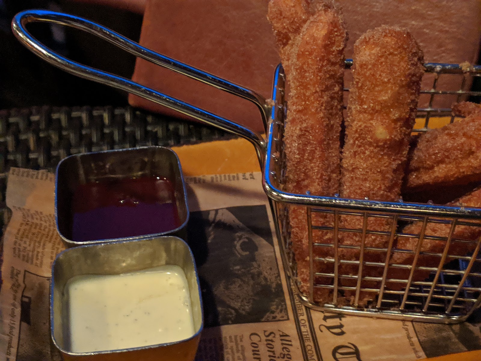 Going into this trip I knew that I’d have to do a few hours of work one afternoon. Turns it out was on our Animal Kingdom day so I trudged my laptop with me through a couple of rides, then needed to find somewhere to spend some time working. My wife suggested Nomad Lounge and I’m so glad she did. I grabbed a seat outside, put my laptop on the table and had a wonderfully relaxing work experience with a couple of plant-based sliders, churros like I’ve never had them before and a fun, non-alcoholic beverage. Despite being outside, it was quite comfortable (there is indoor seating as well), it wasn’t crowded so I didn’t feel like I was taking up room and the Disney Wi-Fi was more than adequate for my needs. When I move back to Florida, I think I’ve found my new office.