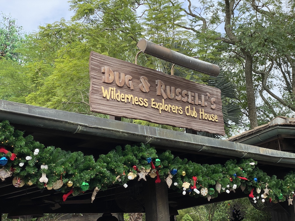 No matter the season, Wilderness Explorers love nature and learning! Russell and his furry friend, Dug have decorated their meet and greet spot with lights, garland, and Christmas trees.