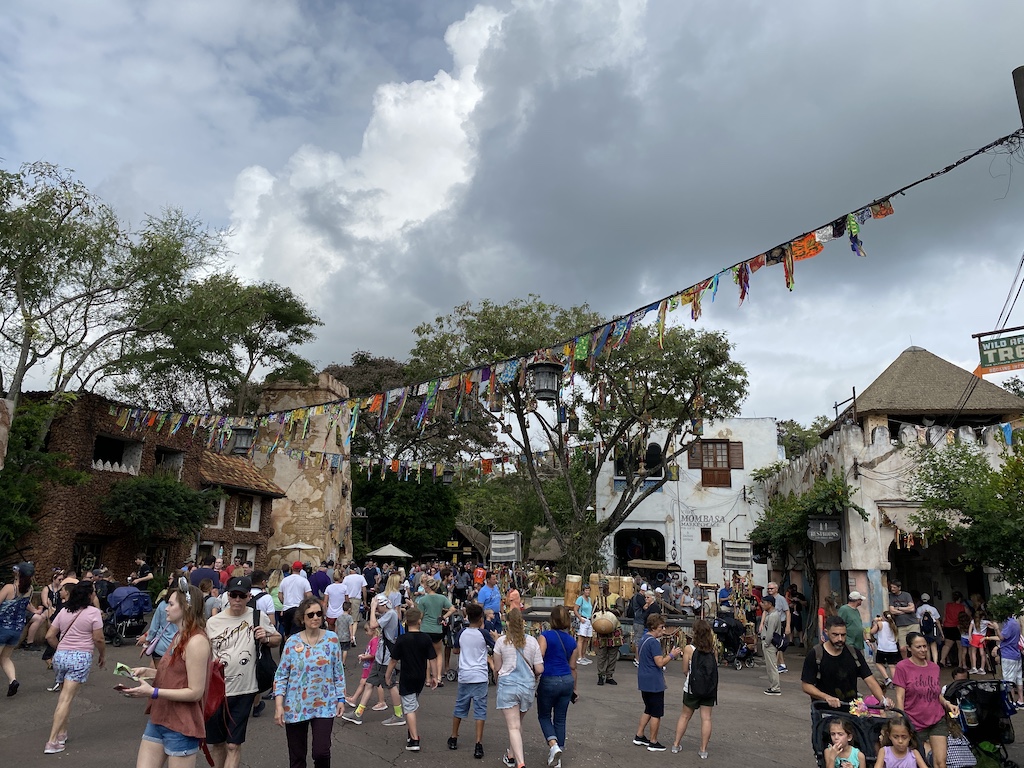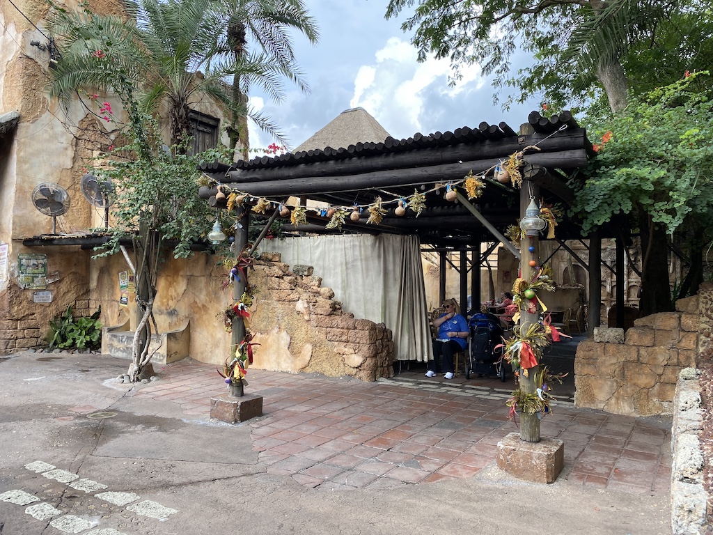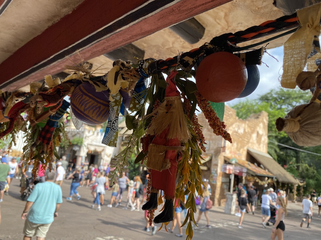 The village of Harambe features brilliant decorations in a variety of bright hues. Here they’ve blended western traditions with the colors and textiles of authentic African celebrations.