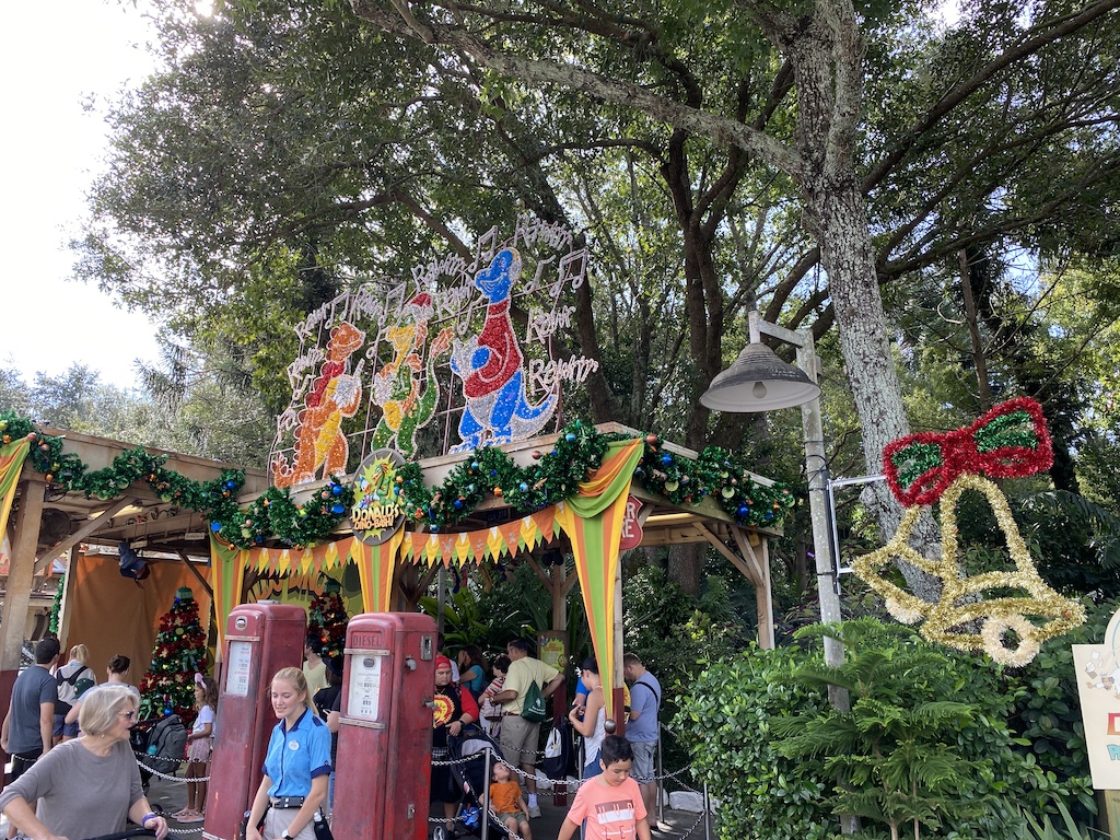 Disney’s Animal Kingdom park is celebrating the holiday season with festive new entertainment and holiday décor in every land of the park. From the magical menagerie of life-sized puppets around Discovery Island to meet and greet overlays in Dinoland U.S.A., the park is alive with the Christmas spirit!