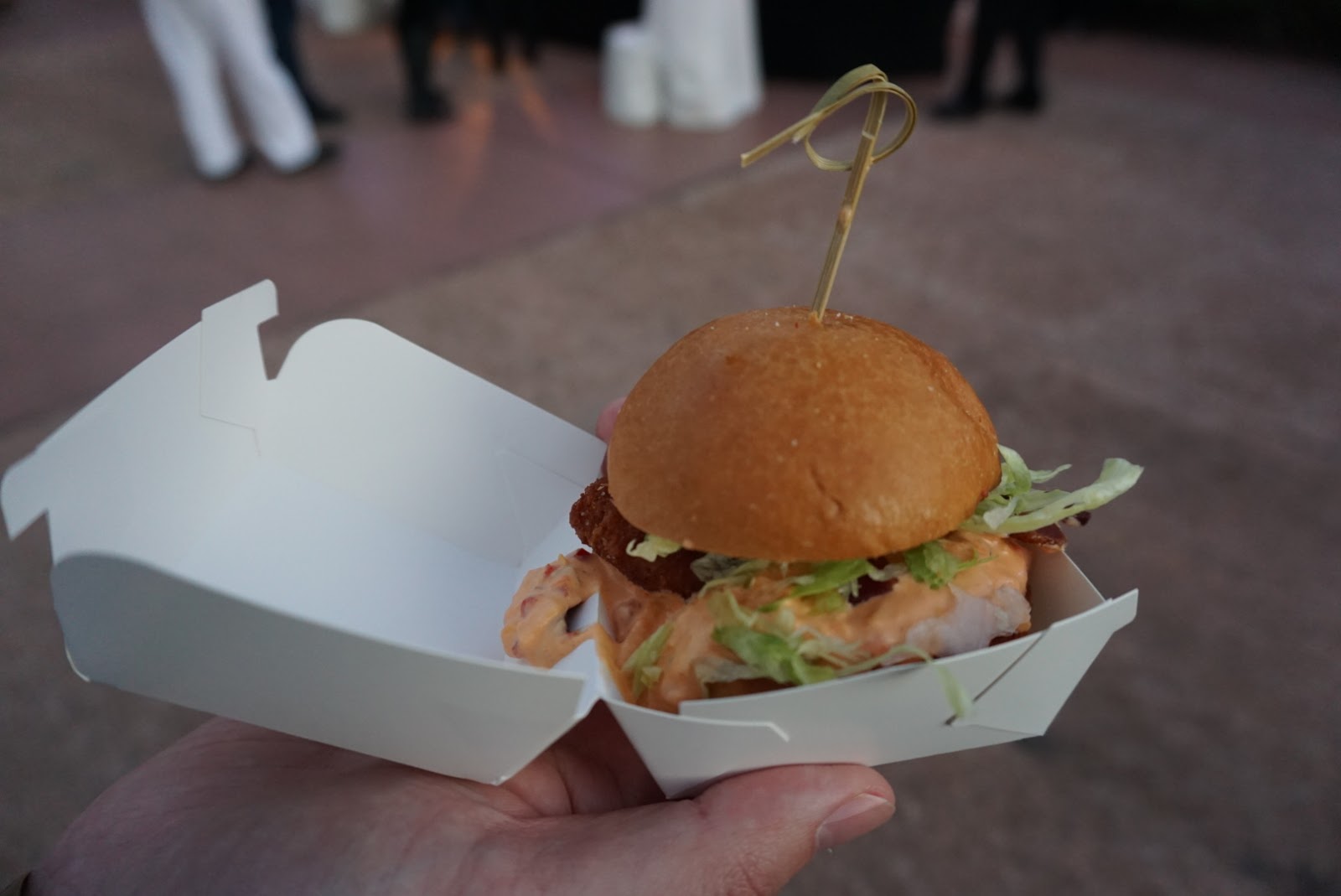 With this being the 10th annual Walt Disney World Swan and Dolphin Food and Wine Classic the Hang 10 booth was added to the event offering multiple seafood options including the Fry Basket, consisting of clams, shrimp, oysters, and fries.