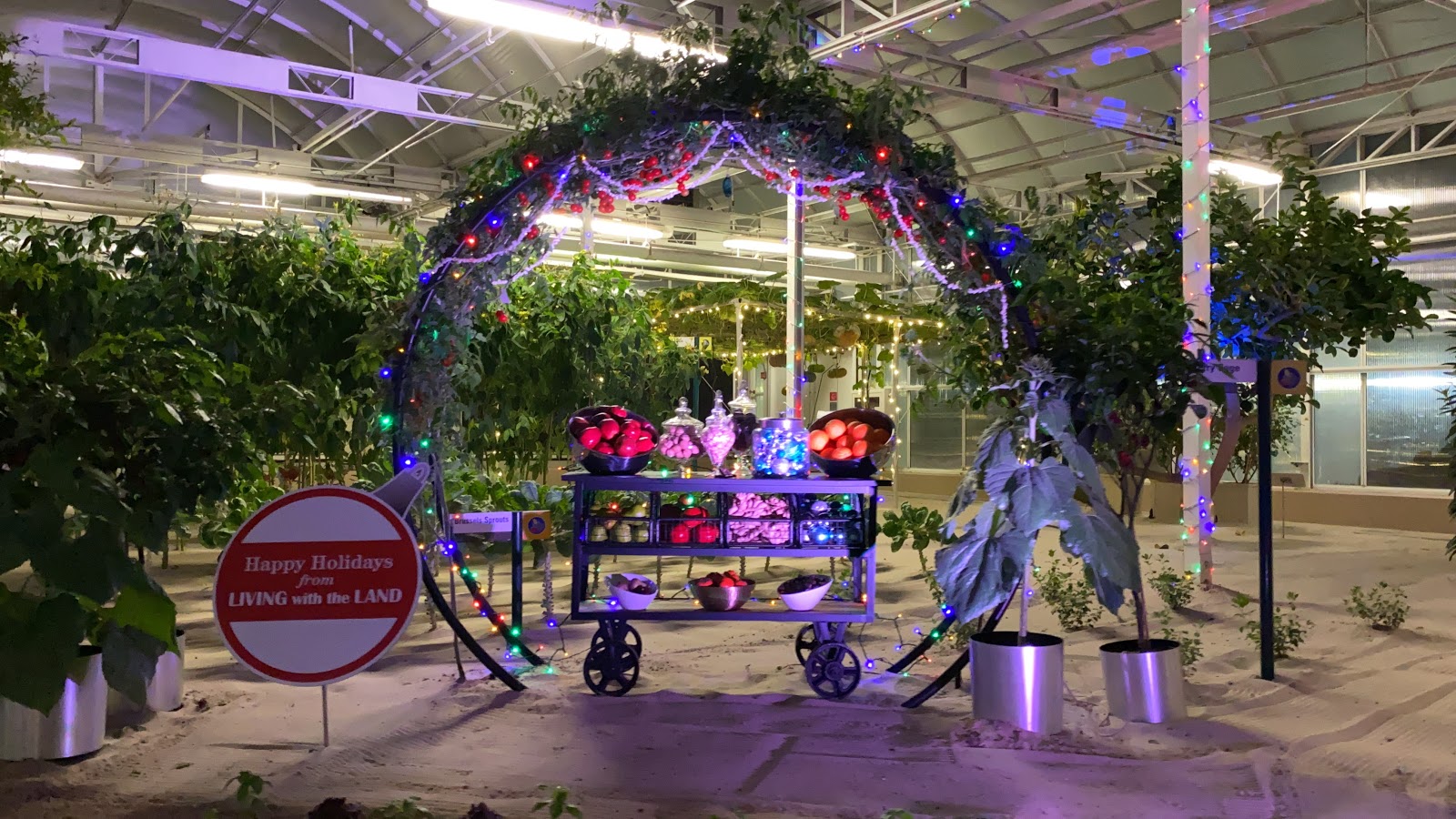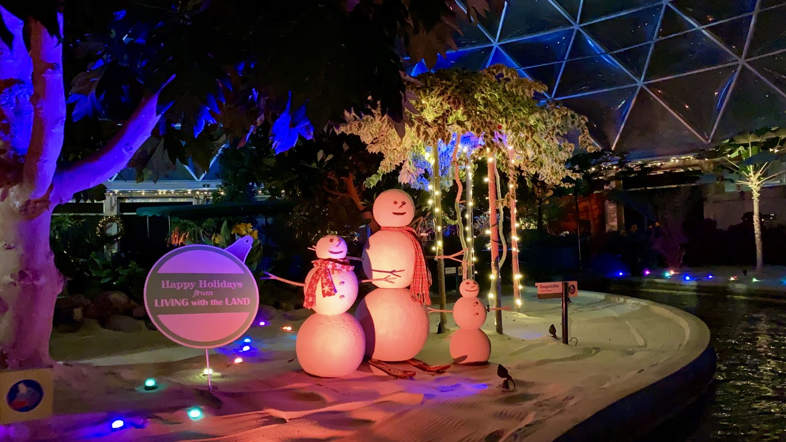 The Disney Parks have a long history of attraction holiday overlays, dating back to Country Bear Jamboree Christmas Special in 1984. But this year, the overlays have moved to a whole new level. For the season, Magic Kingdom has added lights and decorations to the Tomorrowland Speedway and now Epcot takes its first step with Living with the Land: Merry and Bright Nights.