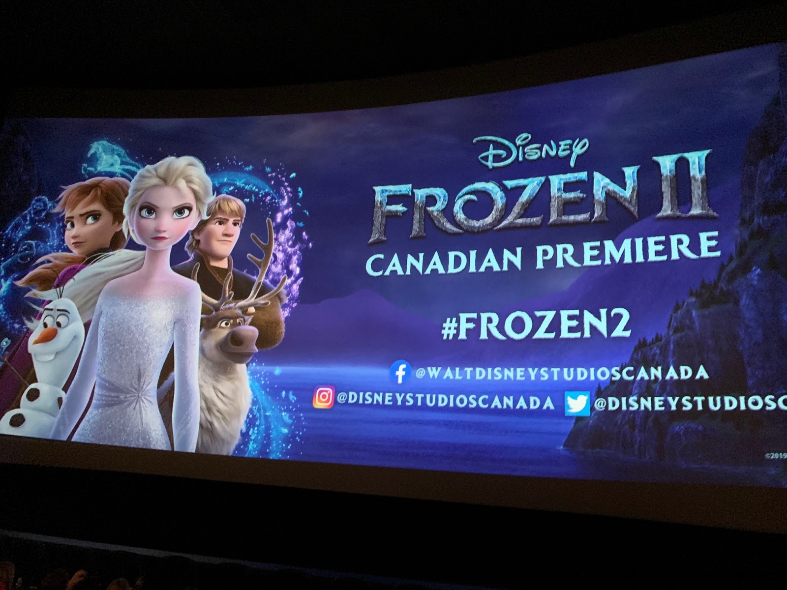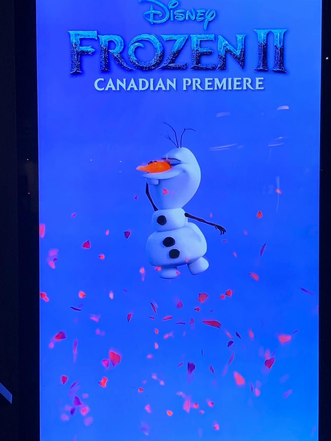 Prior to the movie starting, a Weather Channel representative came out to warm up the crowd (pun intended). It makes sense that when a film is titled Frozen 2 and has seen major events happen in Canada in the last two weeks, of course The Weather Channel would be a major sponsor of the event.