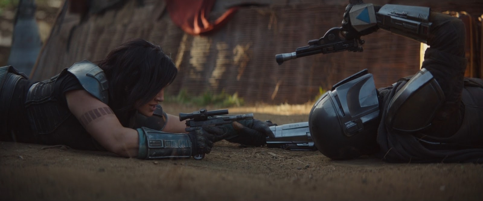 After a tussle outside a local watering hole, our protagonist befriends a fellow mercenary named Cara Dune (Gina Carano of Deadpool), a former Rebel Alliance soldier looking for a place to disappear in the new galactic order after the fall of the Empire. In demand as muscle-for-hire, the two manage to land gigs as protectors of a nearby peaceful krill-farming village with a Klatooinian raider problem.