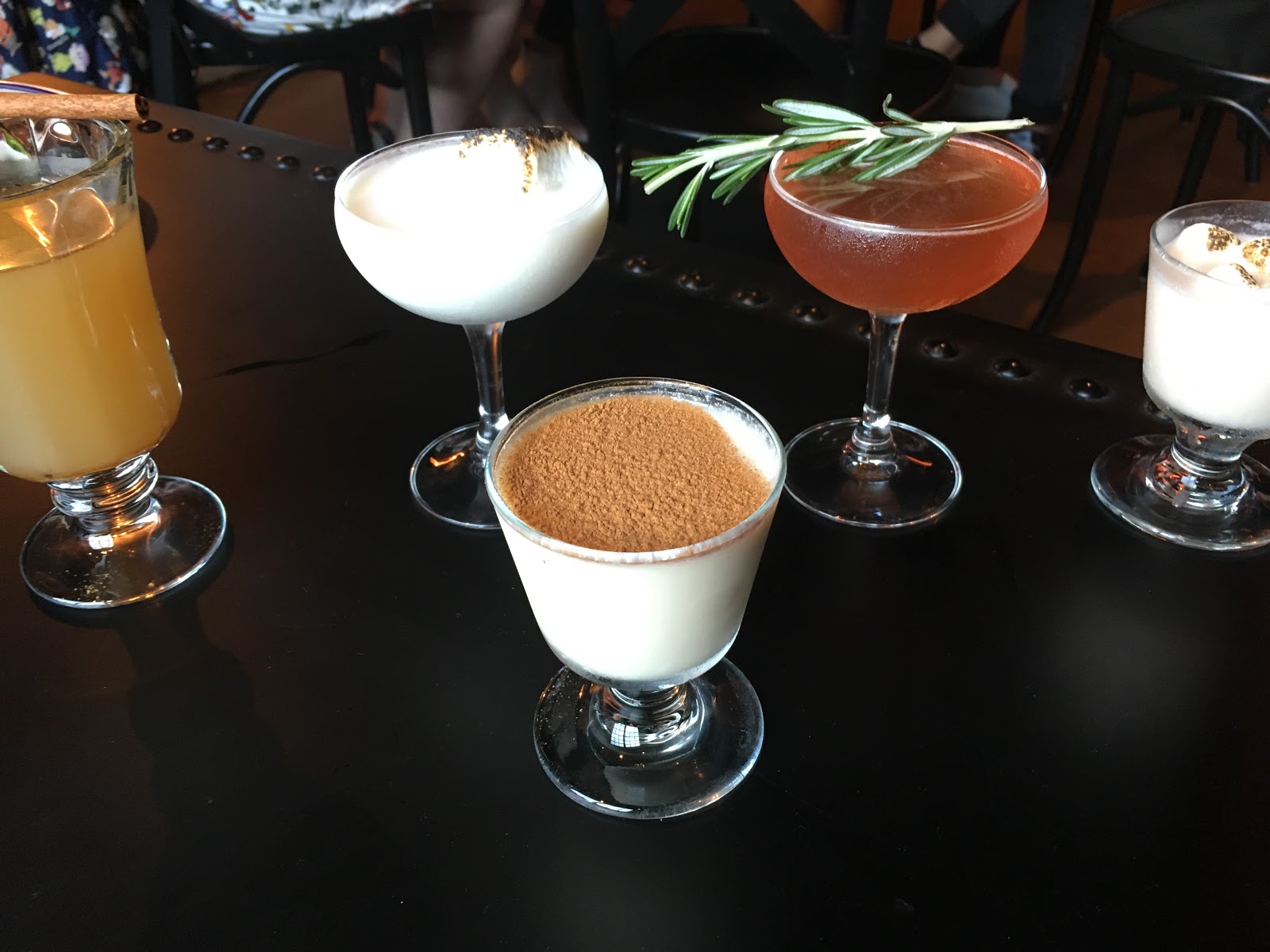The first new drink we tasted was “The Winter Waltz,” which is made with a jolly mix of crème de Cacao, Faretti Biscotti, a splash of cream, a drop of Woodford Chocolate Bitters, and topped with golden brown toasted marshmallows. This cocktail was described as a “cold hot chocolate,” and that is honestly the perfect description. If you want a hot chocolate but the Florida weather isn’t cooperating, this is a great option.