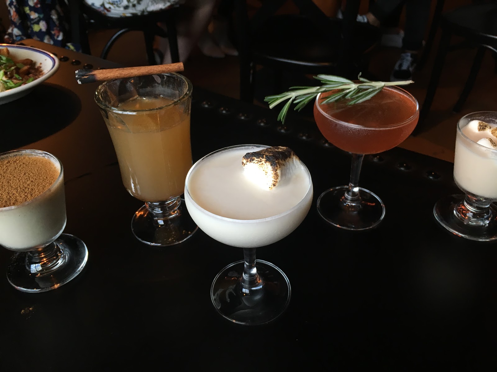 Next was the “Mellow and Toasted,” consisting of Mellow Corn Whiskey, simple syrup, heavy cream, Woodford Chocolate Bitters, and a sweet dash of Madagascar Bourbon Vanilla Extract topped with a sprinkling of ground cinnamon and decorated with one perfectly toasted marshmallow for good measure. If you’re looking for one strong drink, look no further. To quote one of the servers, “Mellow and Toasted is not a description of the drink, it’s a description of you after you’ve had the drink.” It’s still pretty good, but it is definitely strong.
