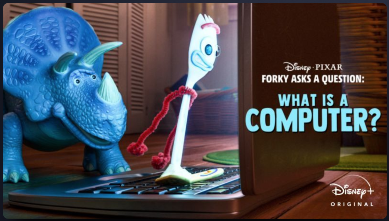 “Trixie explains to Forky what a computer does as they experience the common stresses of technology.”