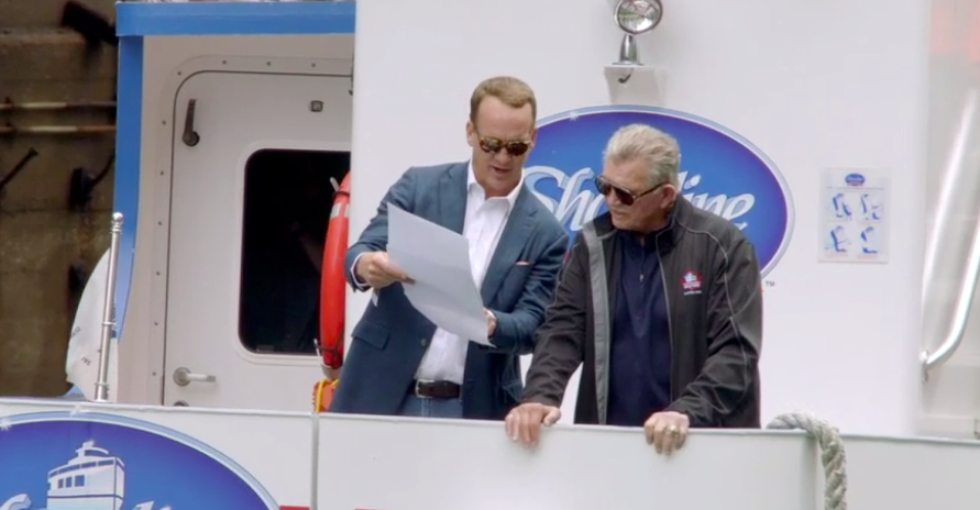 The episode opens with Peyton joining former Chicago Bears coach Mike Ditka on a boat on the Chicago River. The two discuss the Eastland Disaster, in which a boat turned over in the Chicago River in 1915, killing 844 passengers and crew. Among the ticketed passengers, was famed football coach George Halas.