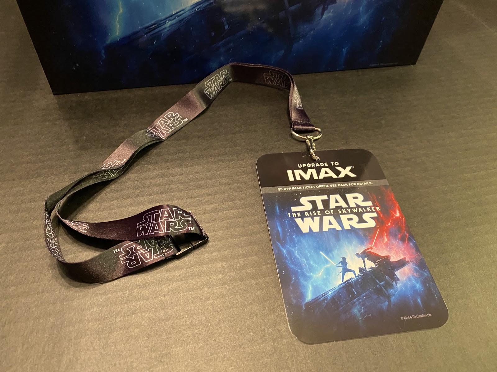 One of the perks of ordering the crate is the ability to save $5 on IMAX upgrade tickets. You can use the code on two tickets, meaning this could become $10 off your IMAX purchase. The lanyard itself is just for show and you’ll likely be the only attendee with one at your screening. The credential is removable and you can use it for other events, including as a lanyard at Star Wars Celebration.