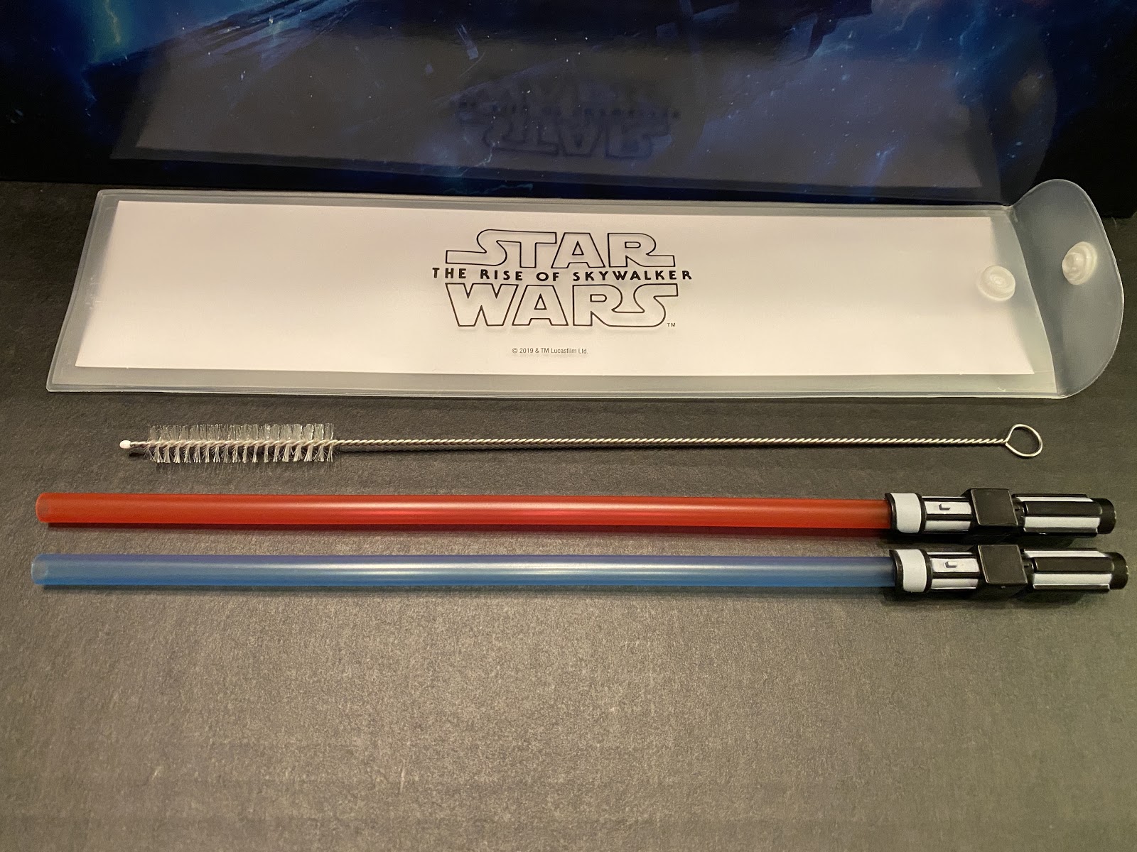 With many theaters already switching to paper straws, the need for your own reusable straw is growing. This box comes with two reusable plastic lightsaber straws form the light and dark side of the force. The hilts are removable and the set comes with a cleaning tool to properly wash them after each use.
