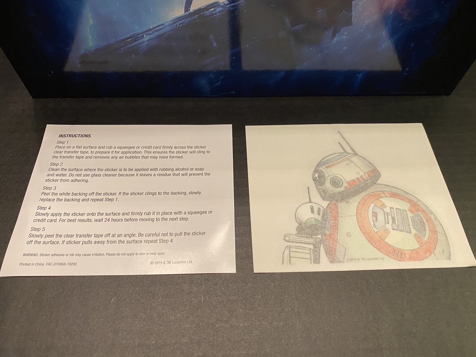 The BB-8 and D-O window decal is a perfect way to add a touch of Star Wars to your car window. It comes with instructions for prepping your window before application and using a credit card to smooth out any air bubbles.