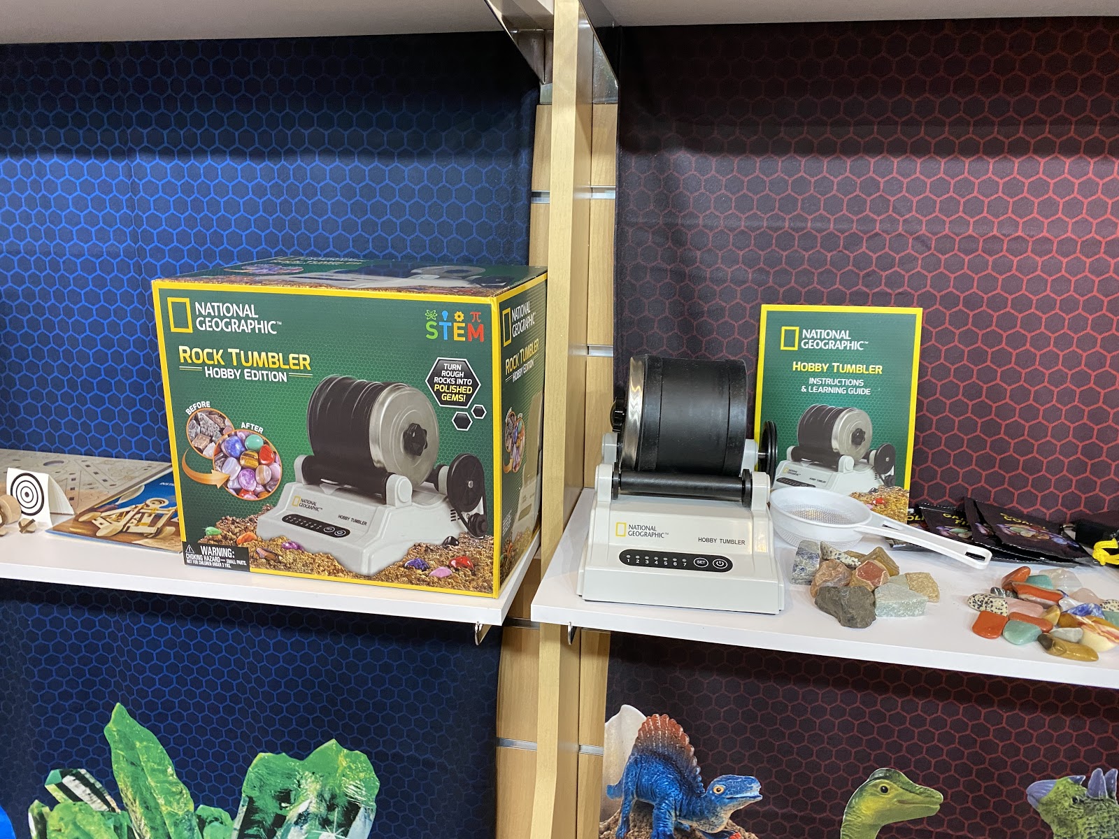 Learn about how rocks become shiny over time, and make some pretty cool decorations or gifts for friends, with the National Geographic Rock Tumbler Hobby Edition.