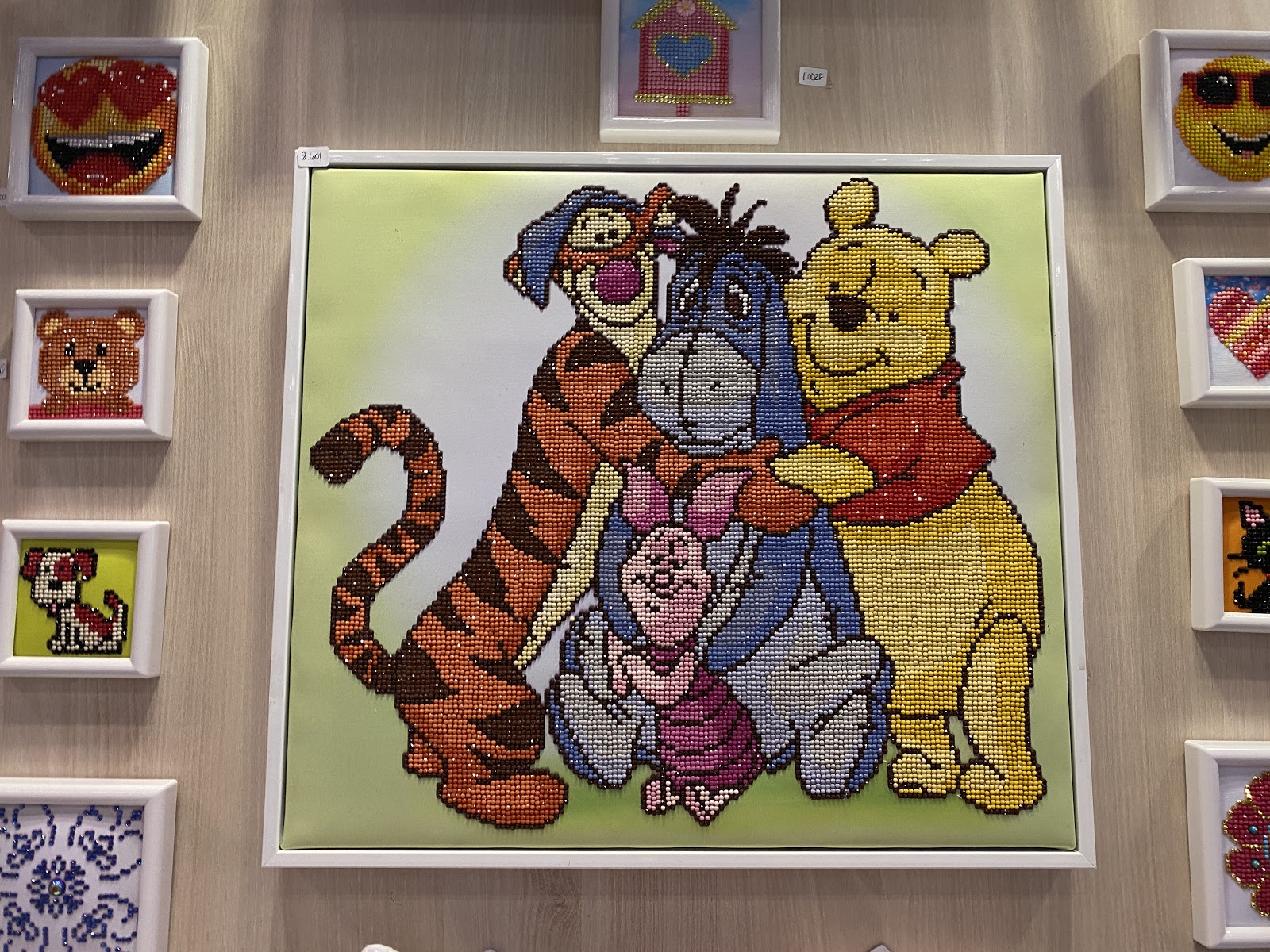 Winnie the Pooh and his best friends from the Hundred Acre Wood are cuddled together in this charming and sparkly masterpiece.