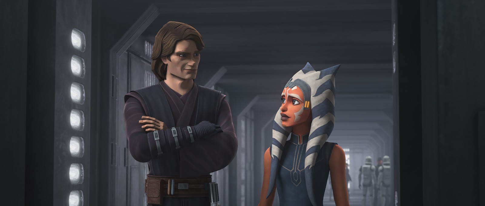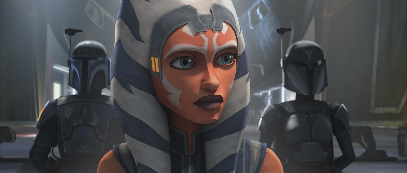 Admiral Yularen (Tom Kane) contacts Anakin and Obi-Wan, saying he’s received a transmission from an agent identifying themself as “Fulcrum.” Anakin thinks it must be Saw Gerrera calling from Onderon, but upon returning to the command ship the signal turns out to have come from his former Padawan learner Ahsoka Tano (Ashley Eckstein). It seems Ahsoka and her Mandalorian associate Bo-Katan Kryze (Katee Sackhoff) have located the rogue Sith Lord Darth Maul (Sam Witwer) and want the Jedi’s help in bringing him to justice. Skywalker is excited by this proposition, but Kenobi remains “cautiously optimistic.”