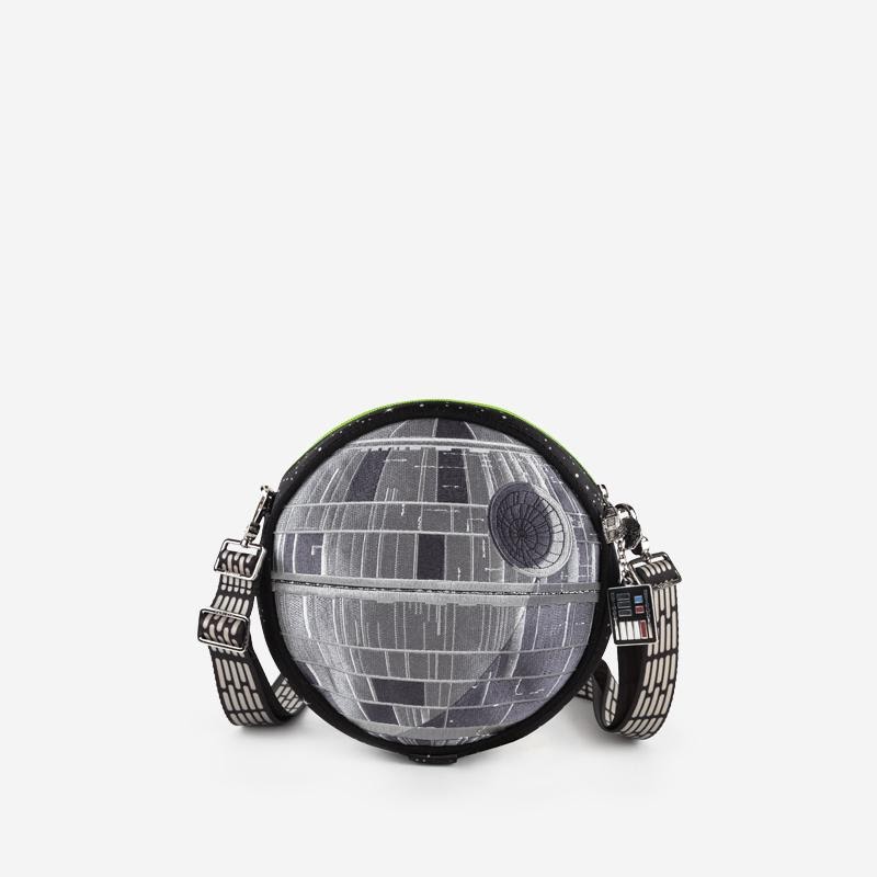 “The Death Star Convertible Crossbody features a detailed double-sided embroidery showing both battle stations from the original trilogy.”
