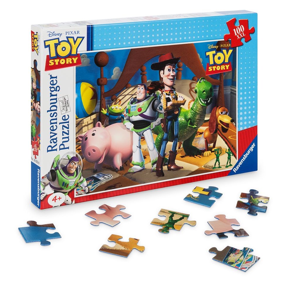 Finally, this 100 piece Toy Story puzzle is perfect for those ready to graduate to the next level of building. The image features pals Woody and Buzz along with Hamm, Rex, Slinky Dog, and the Green Army Men. Recommended for ages 4 and up.