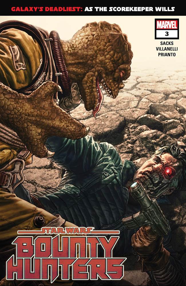 Writer Ethan Sacks’ (Star Wars: Allegiance) plotting work remains solid, and though I’ve complained about Paolo Villanelli’s (Star Wars: Lando - Double Or Nothing) artwork being overly busy and confusing in the past, in this issue I feel he’s made a lot of progress in keeping things simple and clear. The action is well-staged, fun and exciting, and I enjoyed seeing two major players in this series-- not to mention legendary Star Wars bounty hunters in their own right-- go toe-to-toe with each other across so many pages.