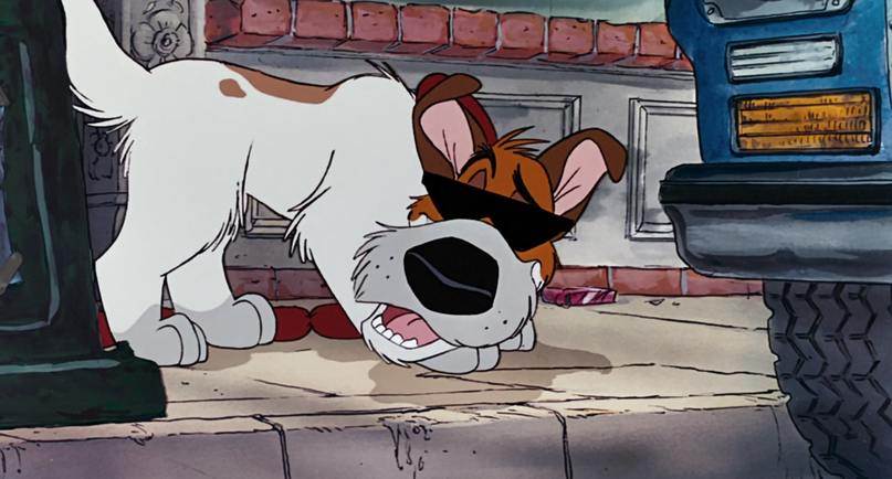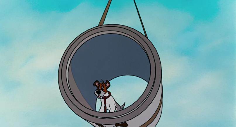 Dodger proves himself a hero when he helps to defeat Sykes’ dog gang, Roscoe and DeSoto, to help set Oliver free so he can live his life with Penny. Good boy, Dodger!
