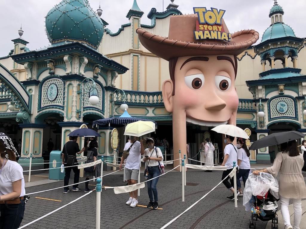 Over in American Waterfront, the queue for Toy Story Mania has been extended all the way outside and again has spatial markers.