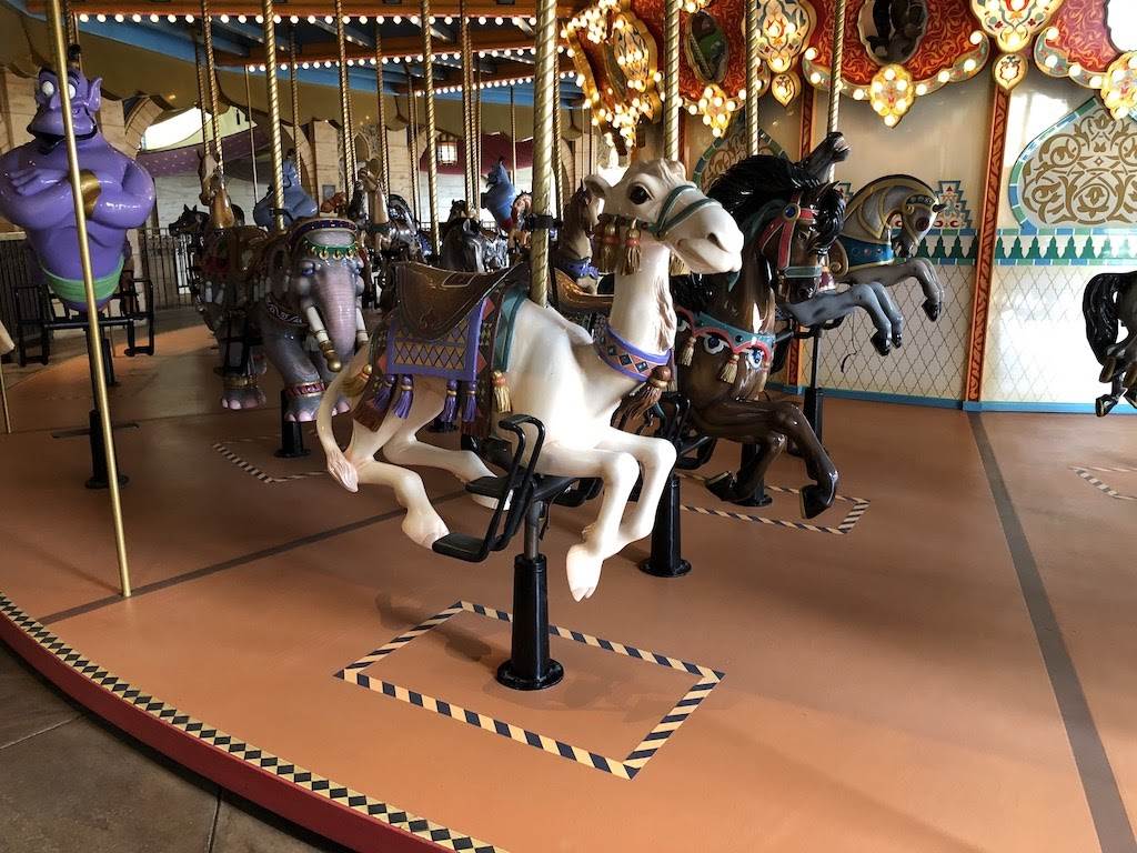 Over in the Arabian Coast, the two level carousel that features the Genie, has select creatures tapped off to keep guests safely spaced out.