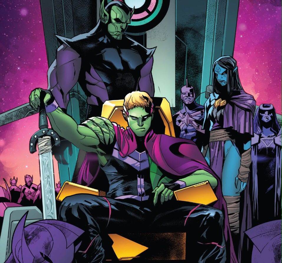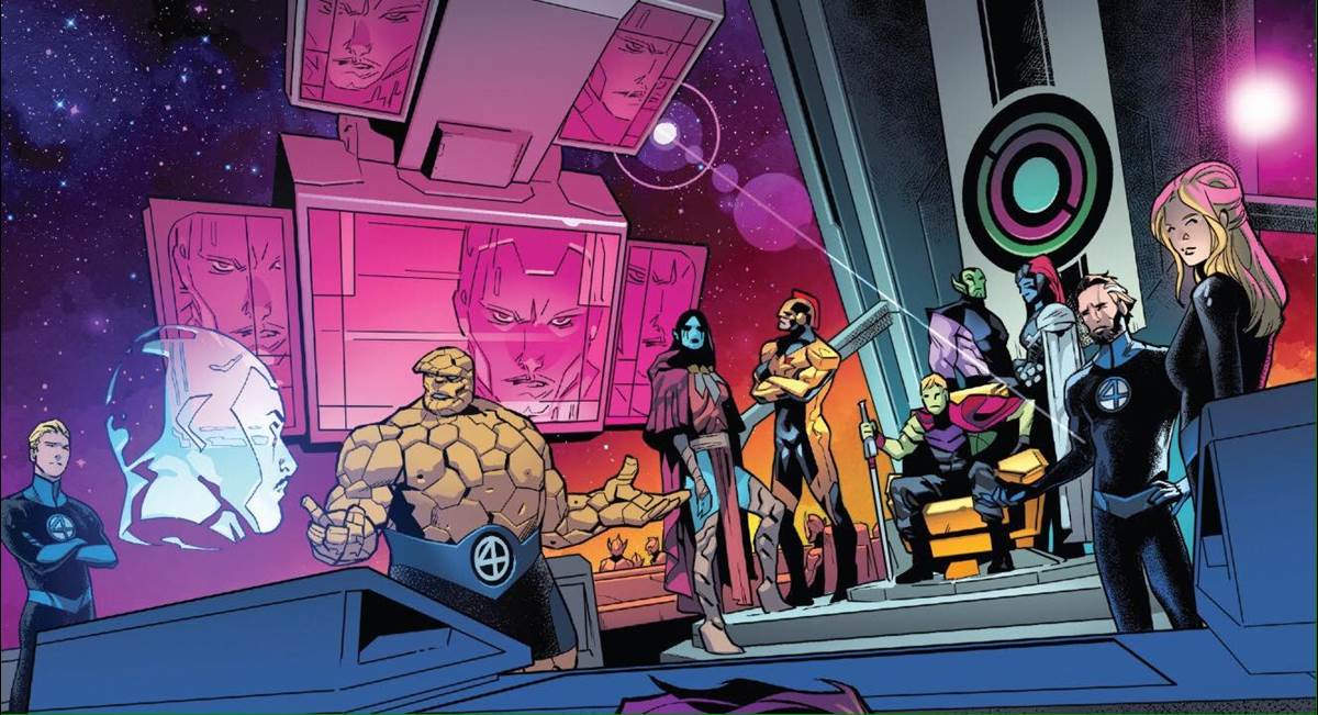 Intrigued by the thought of this new alliance, the Fantastic Four send their children and the recently rescued alien children home in an escape pod before they investigate. To their surprise, they find Earth’s Hulkling as the ruler of this new alliance. They plan to find a diplomatic solution to the issue of this dangerous fleet approaching Earth.