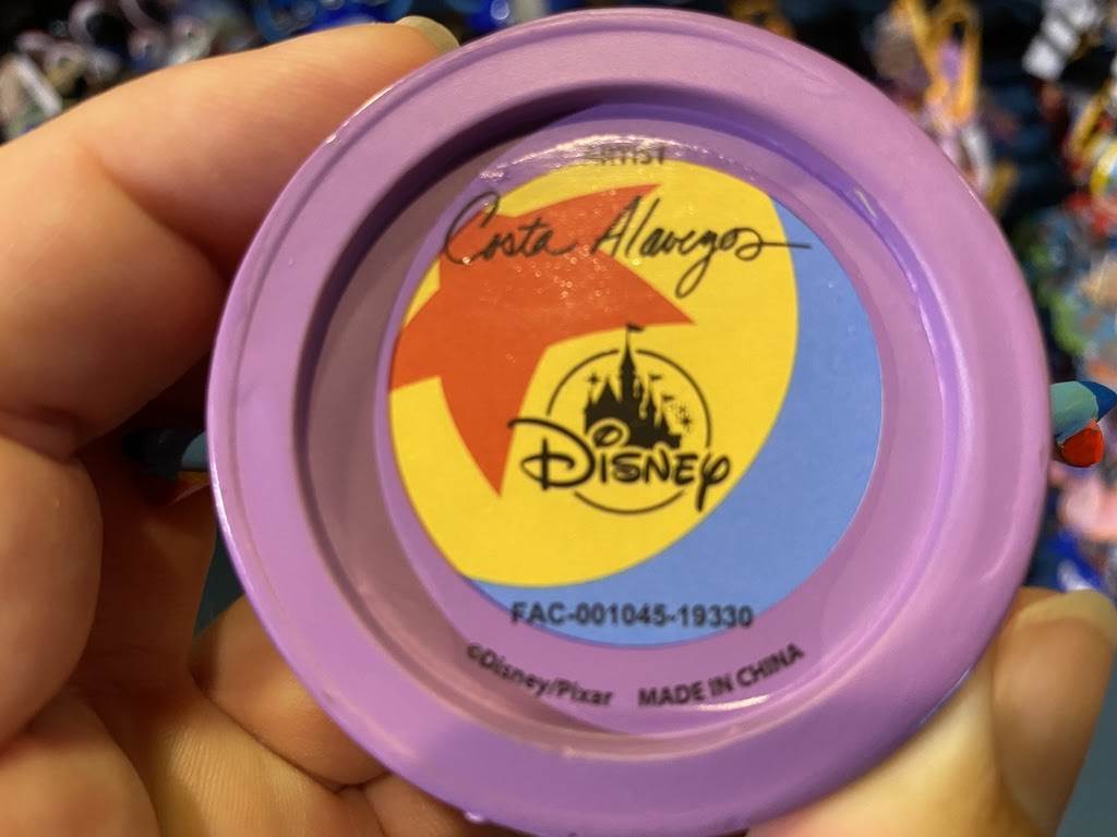Oooo! Alien Swirling Saucers get the main spot on this colorful ornament and the little green man at the controls seems to be having a great time. The land’s marquee is on display on the right ear, while Slinky of Slinky Dog Dash is hanging out on the left side. And finally, the iconic Pixar ball featured on the bottom.