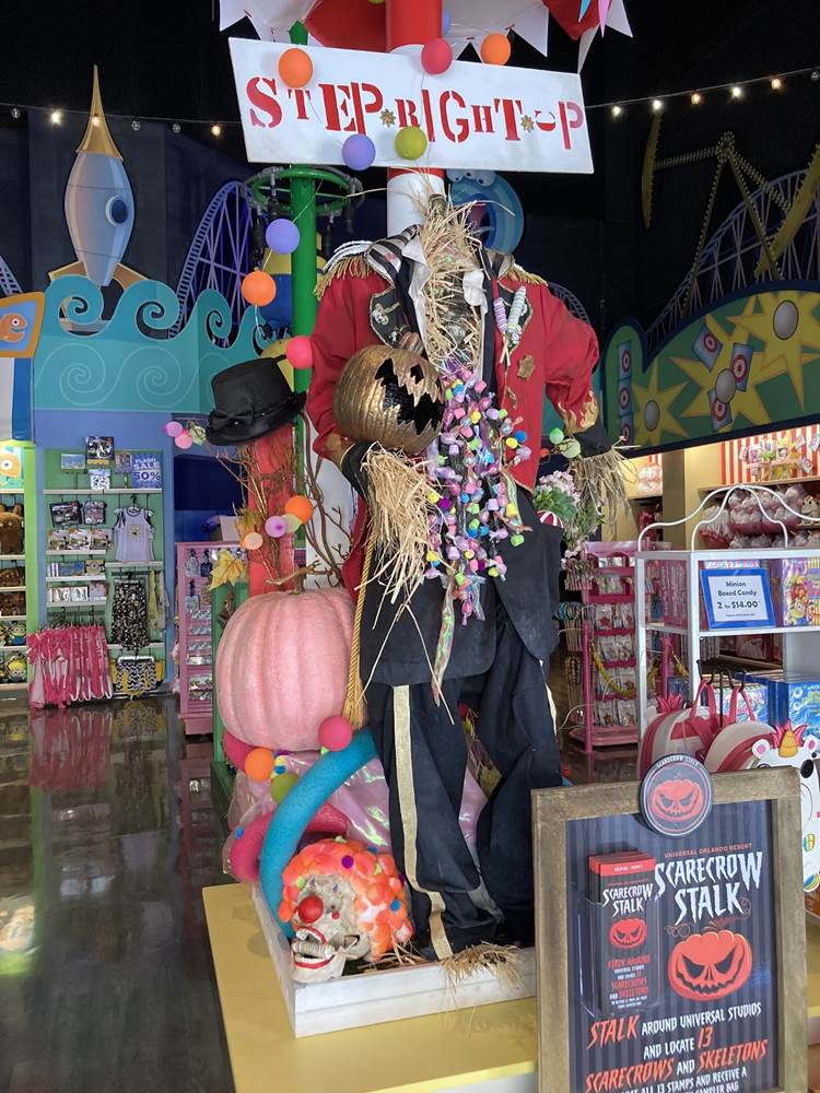 Once guests find the scarecrow, they can find a Universal Team Member in that shop to collect their stamp for that location. Once guests have collected all 13 stamps, they can head to either San Francisco Candy Factory or Studio Sweets to pick up their choice of sweet treat.