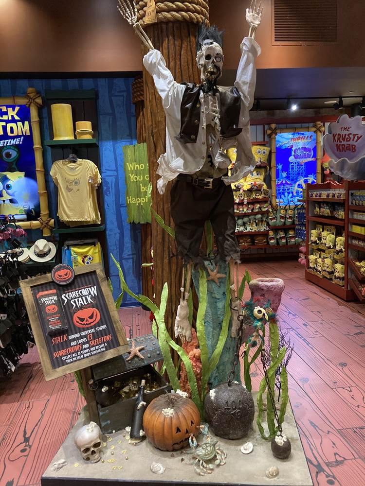 Guests will go from shop to shop, finding the various scarecrows. Each one is themed to the shop in which it is located. For example, here is a look at the scarecrows located in Super Silly Stuff and Spongebob Storepants.