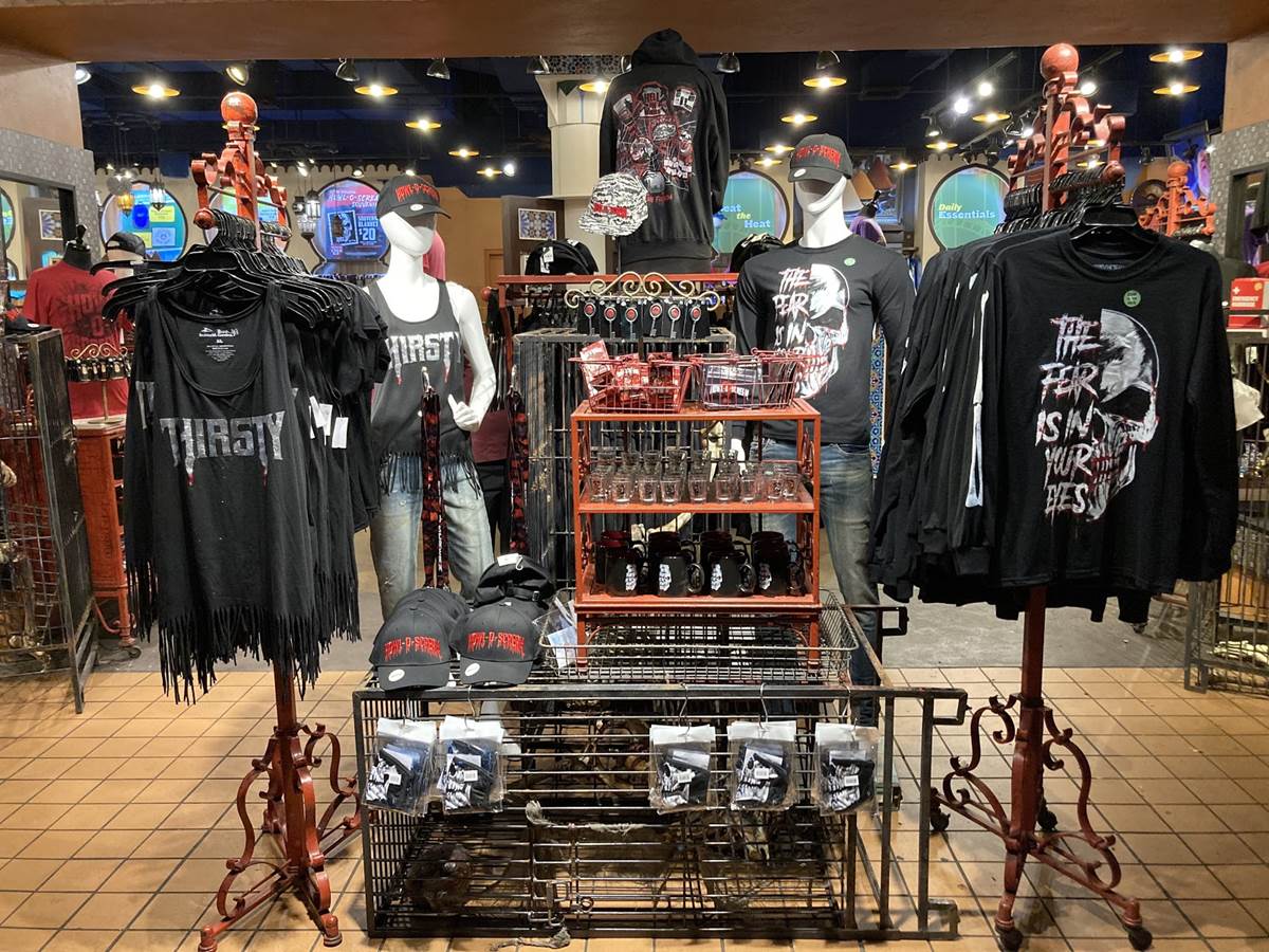 Of course, guests can also pick up all kinds of Howl-O-Scream merchandise, including apparel, drinkware, accessories and more. There’s even a small collection of items themed to “Fiends.”