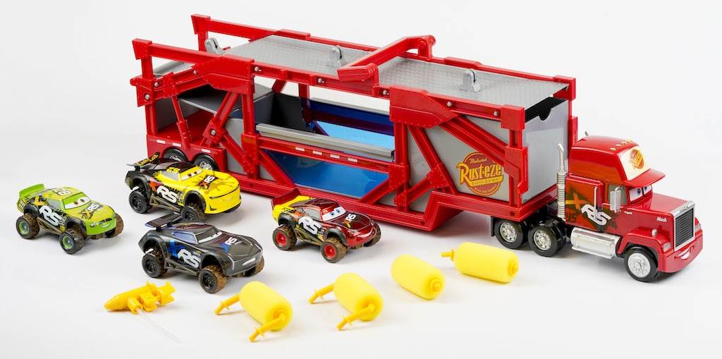 Load them up and haul them out! Mack has a lot to say for himself as he transports Lightning McQueen and five of his friends from Disney and Pixar's Cars films. Mack features character phrases and light-up headlights, plus space for additional vehicles.
