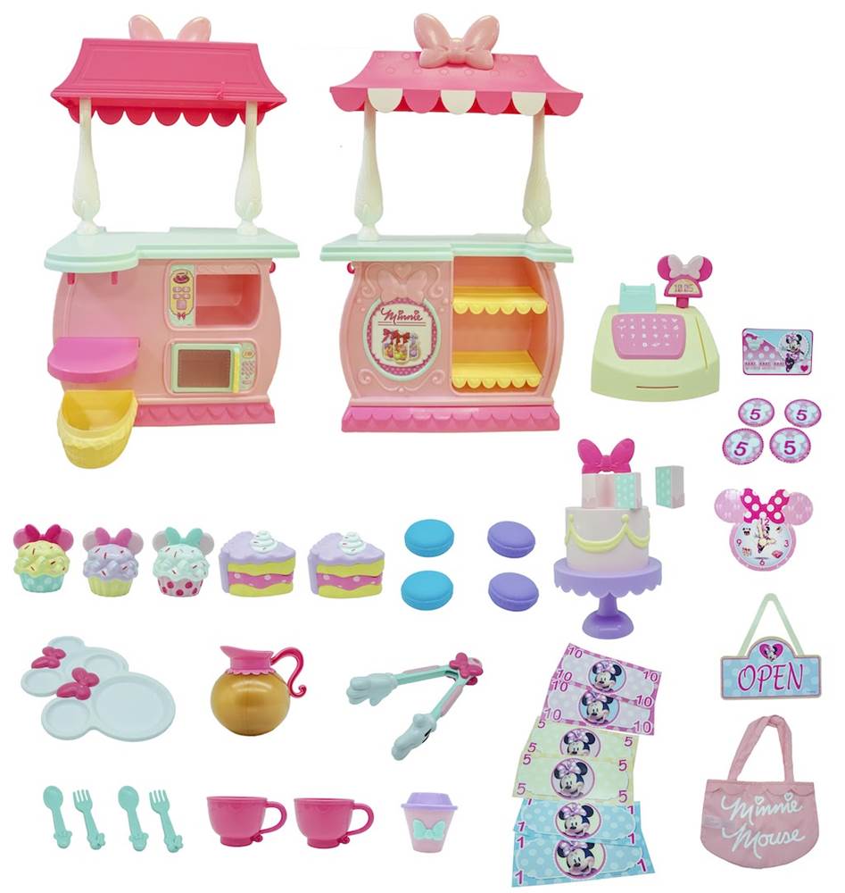 Business is going to be brisk when your young chef has their own bake sale with the help of Minnie Mouse and her Sweet Treats Stand. The play set features a double-sided stand that's over 3-ft. tall and includes an open/close sign, cash register with sound effects, and lots of play cakes so they'll enjoy hours and hours of delicious fun.