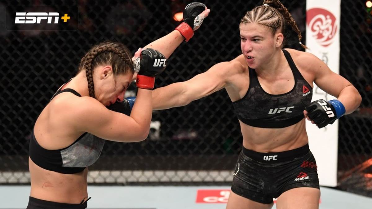 In an earlier bout, the 23-year-old Miranda Maverick stuck her opponent, Liana Jojua, with a nice elbow that prompted the doctor to stop the fight after the first round. That gave Maverick a victory in her UFC debut and improved her professional record to 9-2. She could be an up-and-coming contender in the UFC’s Women’s flyweight division.